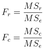 If the Fr is greater than the F(DFr, DFe, α), you can reject the first null hypothesis. If the Fc is greater than the F(DFc, DFe, α), you can reject the second null hypothesis.